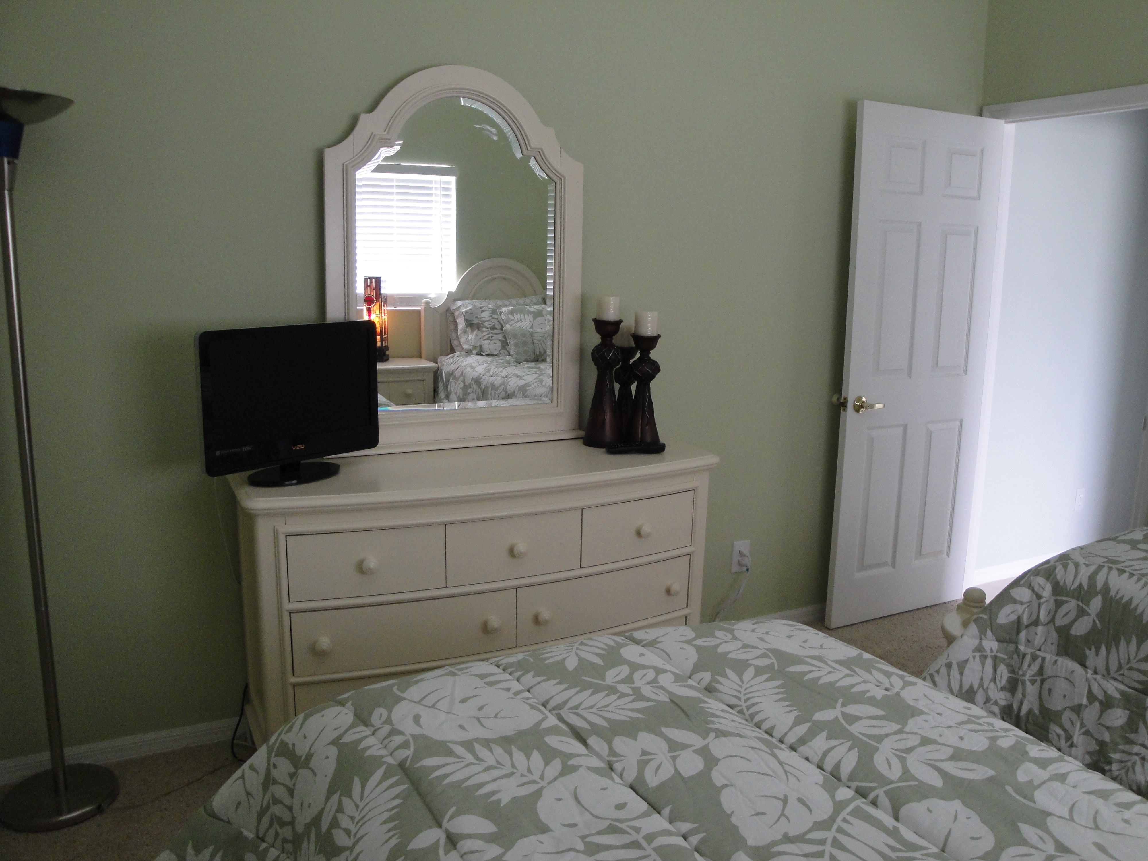 This beautiful bedroom also features a large closet, bed seats and of course a new plasma TV with all the cable channels. It is very bright and cheery because it has a very large window and also a very high cathedral ceiling that features a very quiet multi-speed fan to complete that Florida feeling.