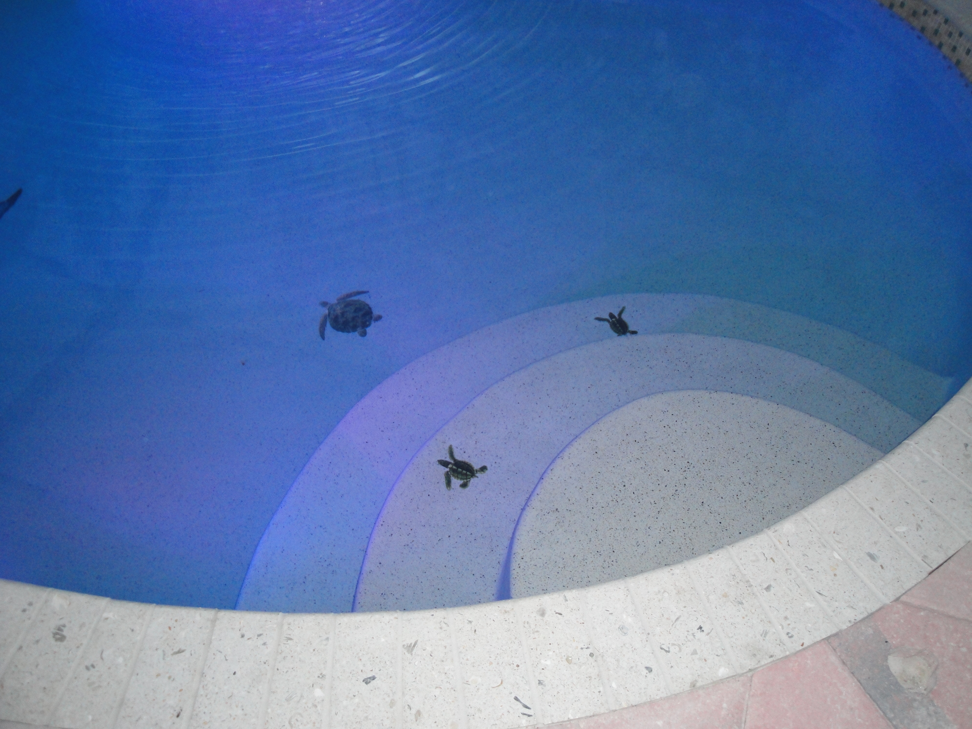 pool tiles and the color of the sky. It looks like that naturally, all the time.